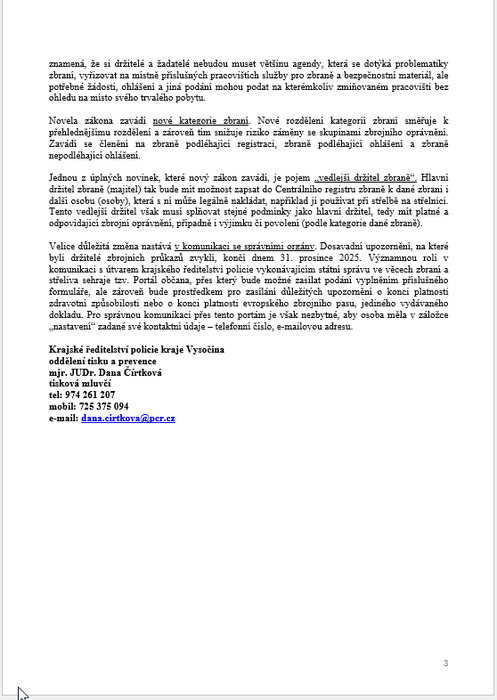 Úvod > Aktuality > Tisková zpráva -zákon o zbraních